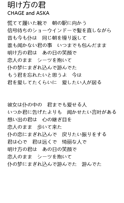 | 谁も闻かない君の事 いつまでも包んだまま | |