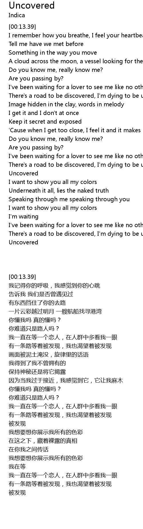 | [00:50.70] | There's a road to be discovered, I'm dying to be uncovered |