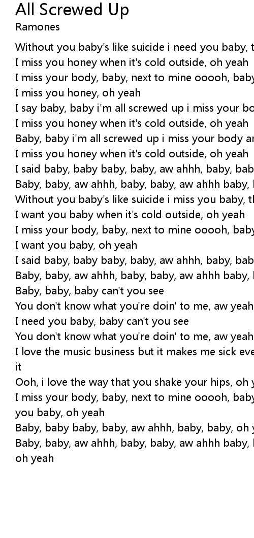 Baby, baby i'm all screwed up i miss your body and i need your love |