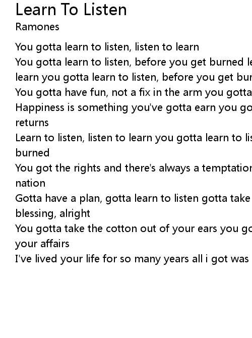 You gotta learn to listen, before you get burned learn to listen, listen to learn you gotta learn to listen, before you get burned |