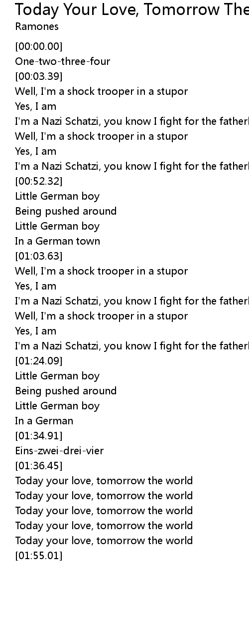 [00:38.05] I'm a Nazi Schatzi, you know I fight for the fatherland