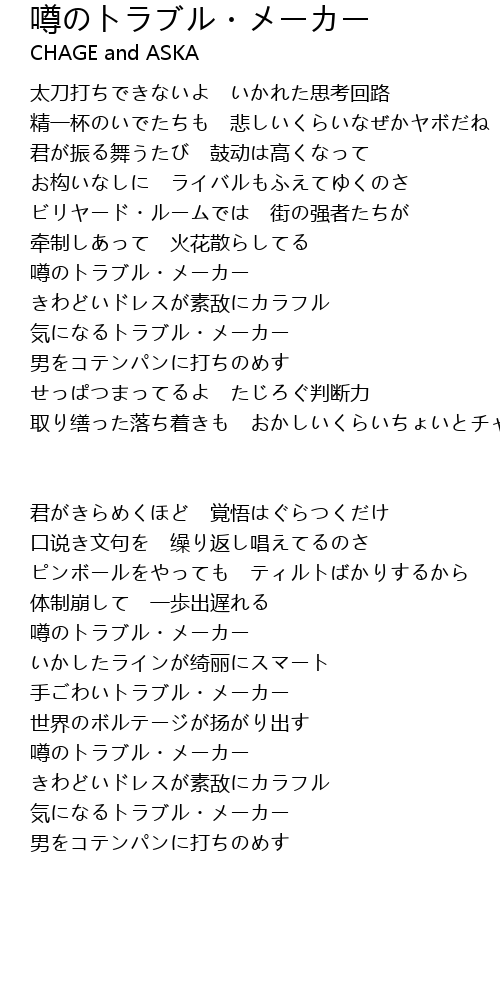 | Song | 噂のトラブル・メーカー |