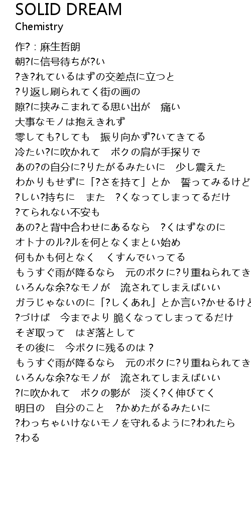 | [01:52.89] | ?しい?持ちに また ?くなってしまってるだけ |