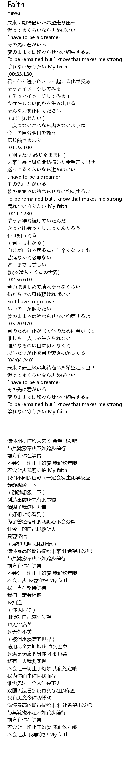 | [04:34.940] | 譲れない守りたい My faith |