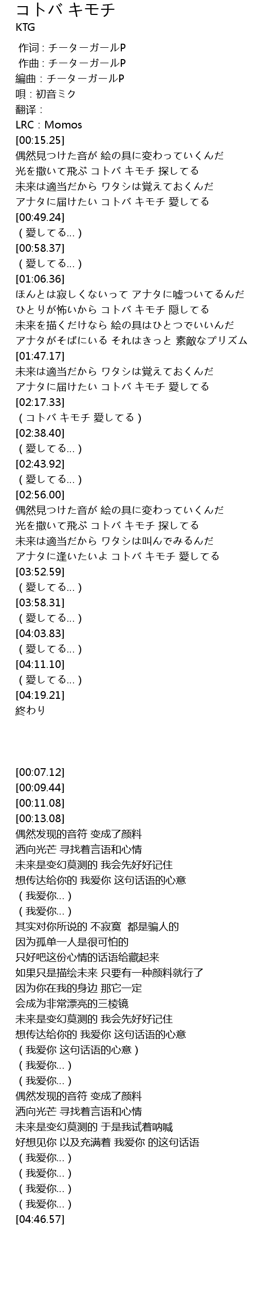 | [00:39.74] | アナタに届けたい コトバ キモチ 愛してる |