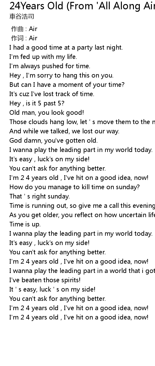 | [01:12.71] | I'm 2 4 years old , I've hit on a good idea, now! |