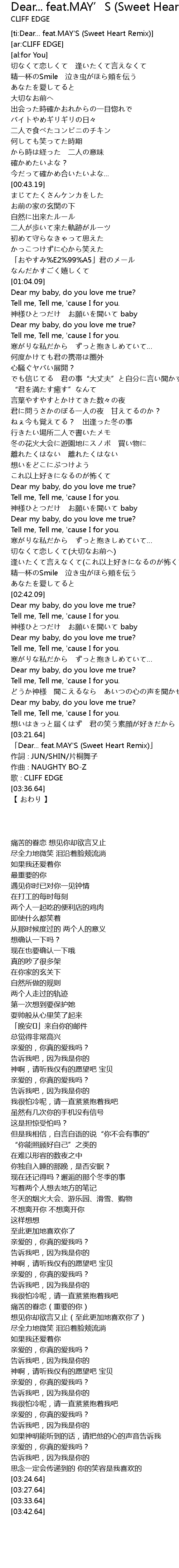 | [03:24.64] | 「Dear... feat.MAY'S (Sweet Heart Remix)」 |