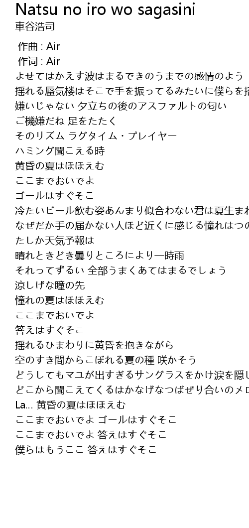| [02:14.17] | 空のすき間からこぼれる夏の種 咲かそう |