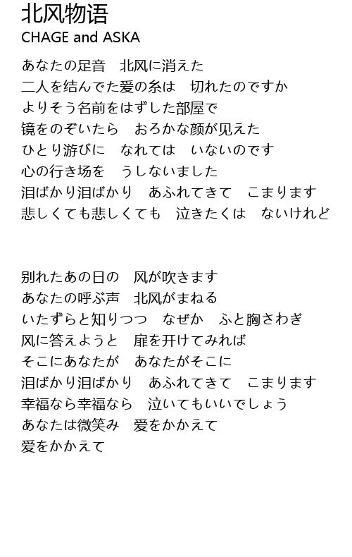 あなたの呼ぶ声 北风がまねる |