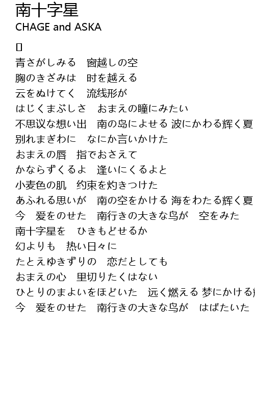 | 今 爱をのせた 南行きの大きな鸟が 空をみた | |