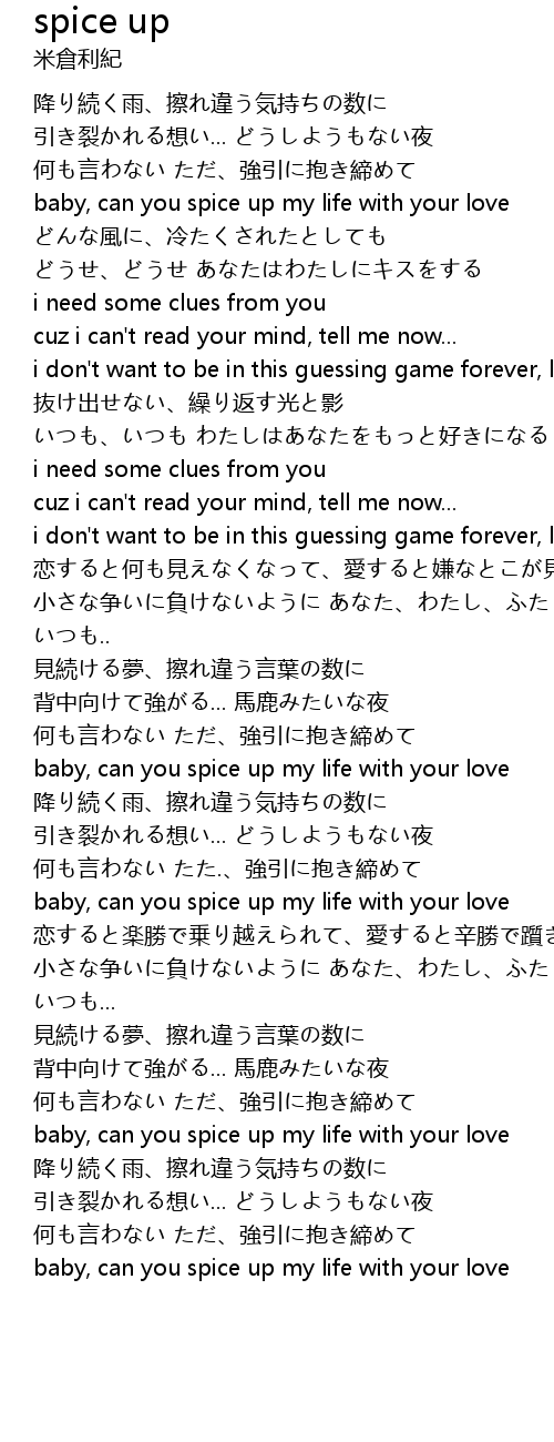 | baby, can you spice up my life with your love |