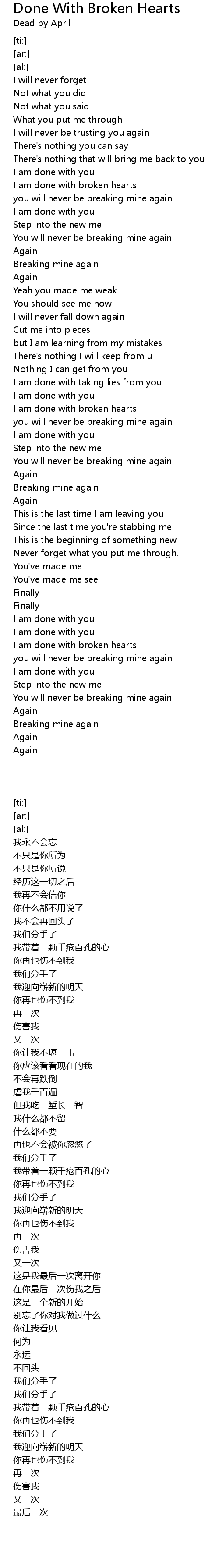 [02:34.81] I am done with broken hearts