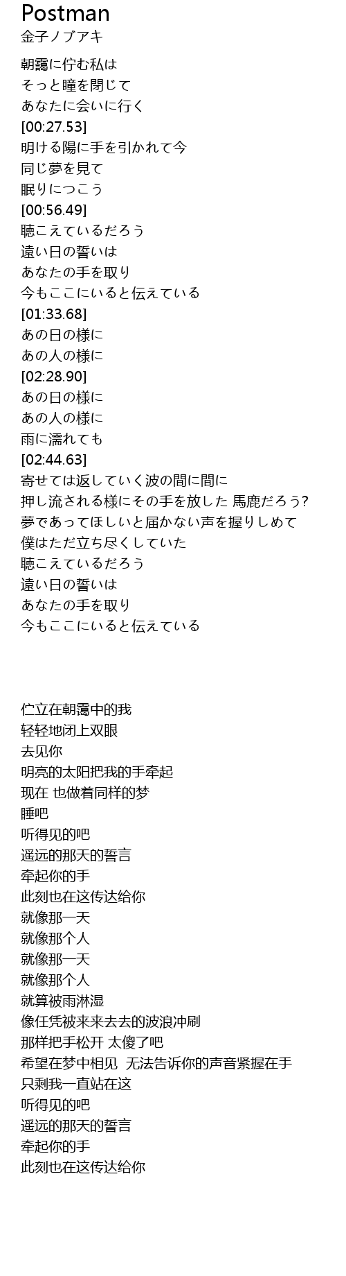 | [00:29.01] | 明ける陽に手を引かれて今 |