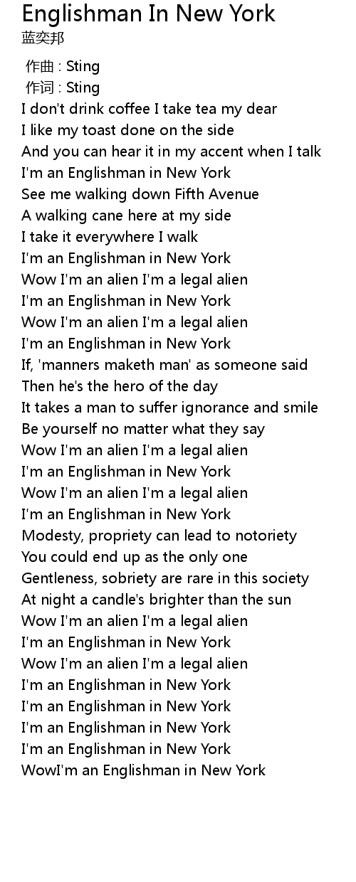 | [00:55.00] | I' m an Englishman in New York |