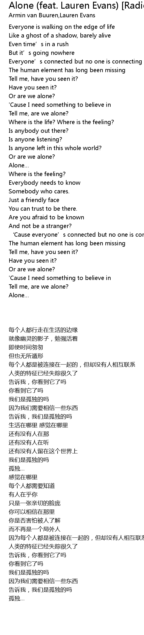 | Song | Alone (feat. Lauren Evans) [Radio Edit] |