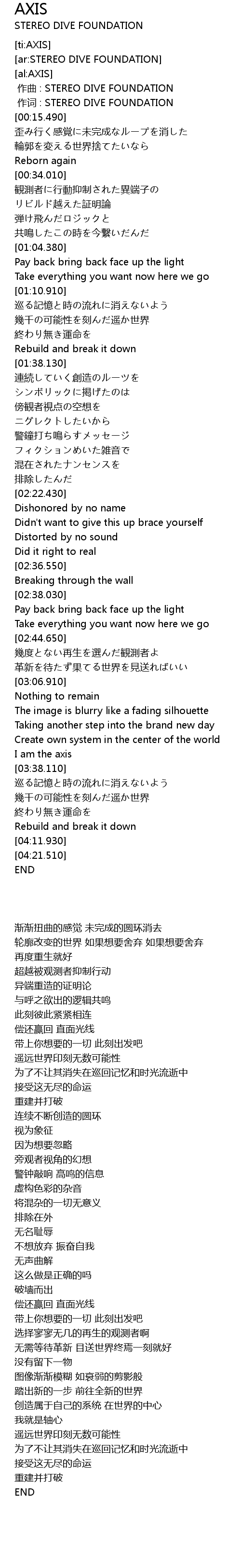 | [00:00.00] | zuo qu : STEREO DIVE FOUNDATION |