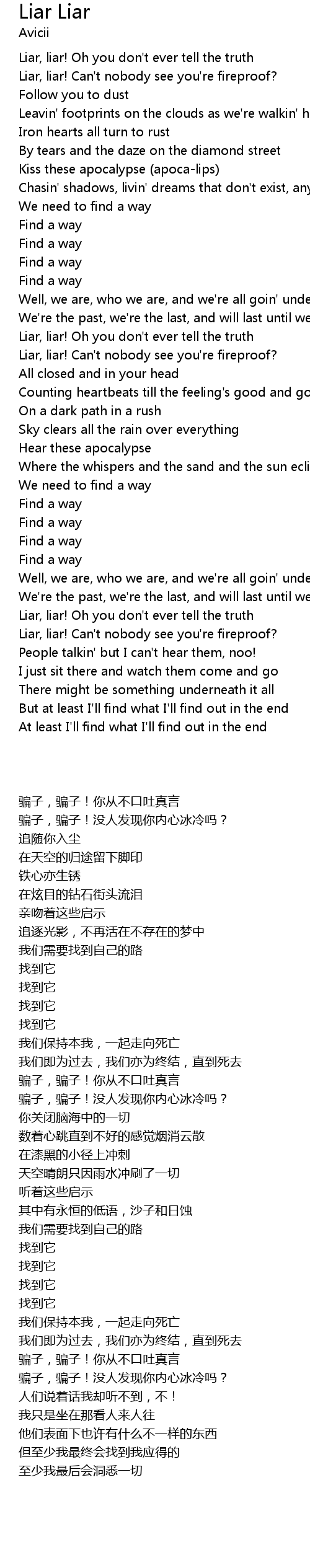 Liar, liar! Oh you don't ever tell the truth |
