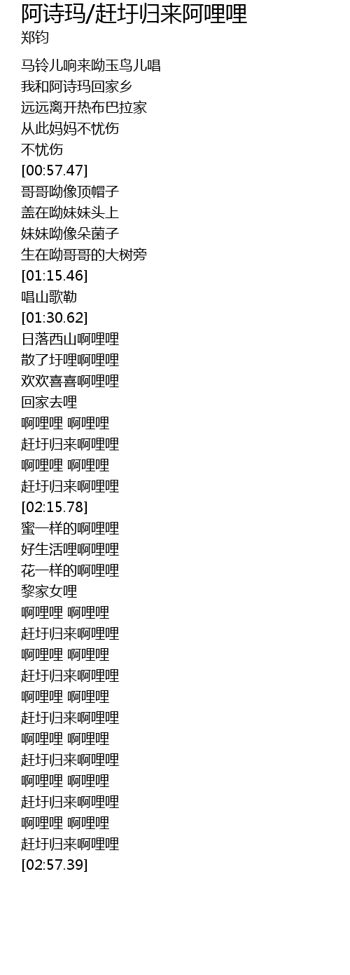 | [00:36.38] | 我和阿诗玛回家乡 |