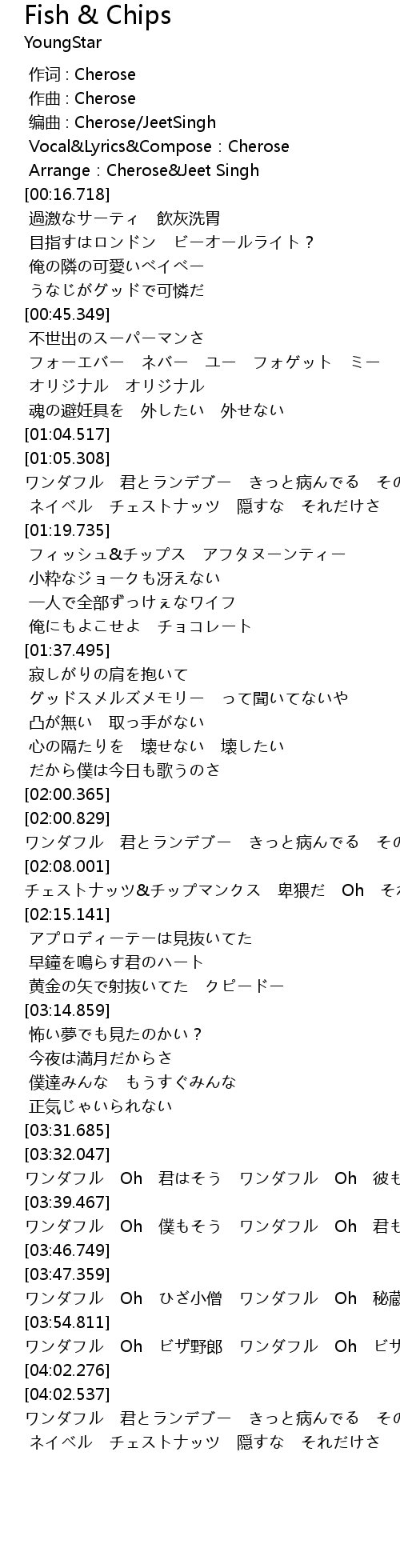 | [03:54.811] | ワンダフル Oh ビザ野郎 ワンダフル Oh ビザ発行 |