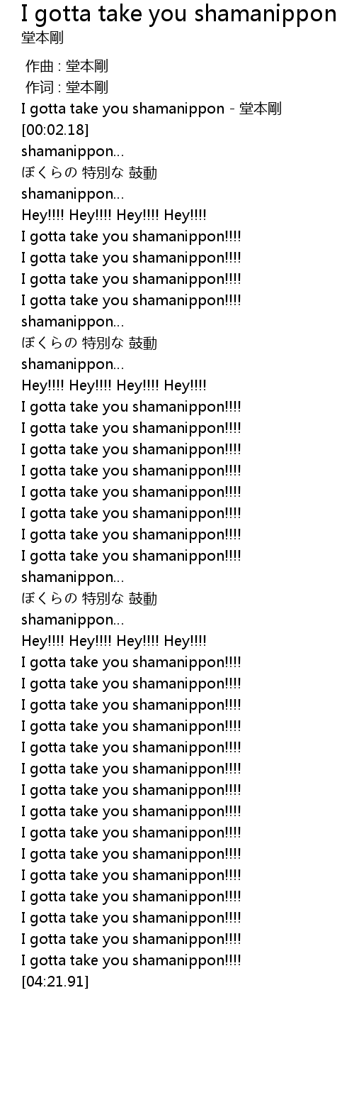 | [00:00.50] | I gotta take you shamanippon - 堂本剛 |