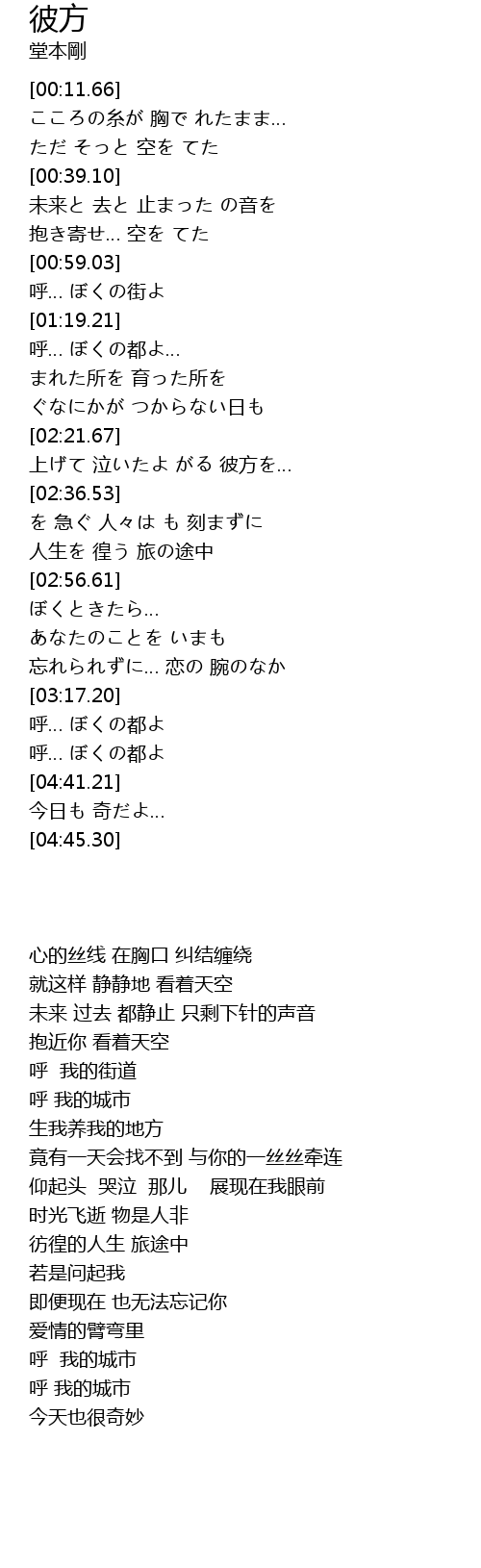 | [00:41.57] | 未来と 去と 止まった の音を |