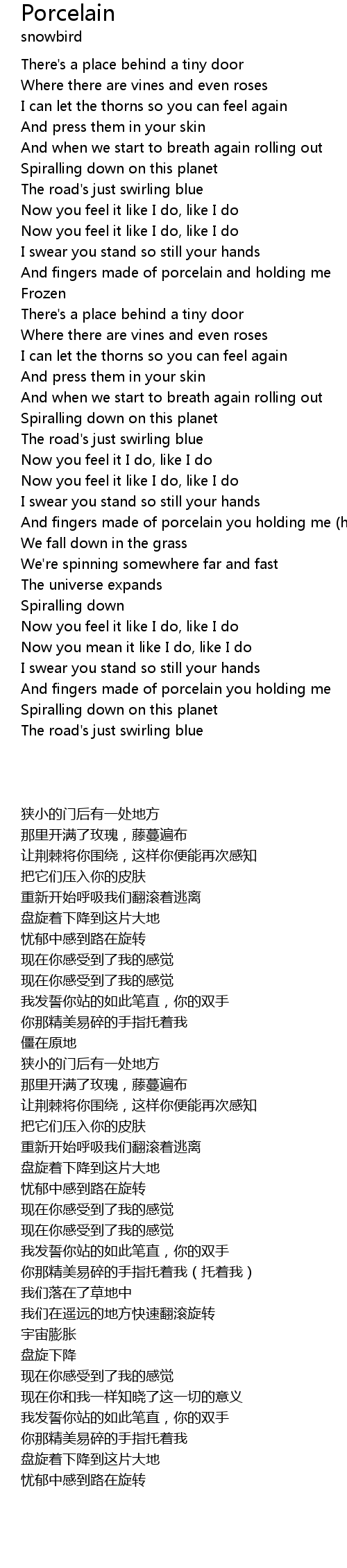 | [02:36.30] | And fingers made of porcelain you holding me (holding me) |