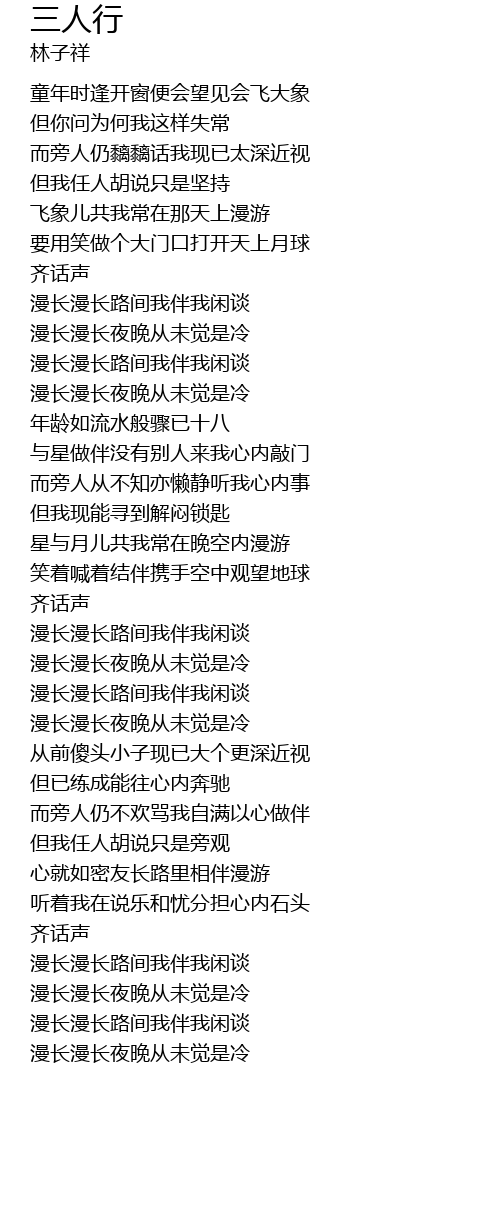 | [02:17.1] | 漫长漫长路间我伴我闲谈 |