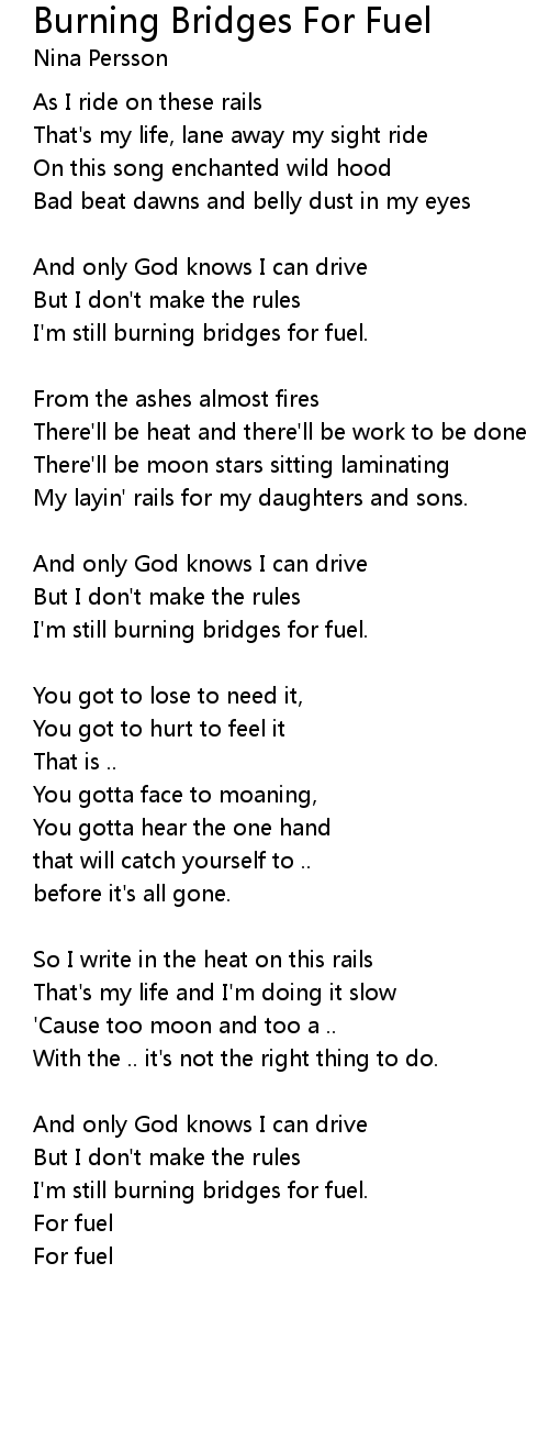 Song Burning Bridges For Fuel