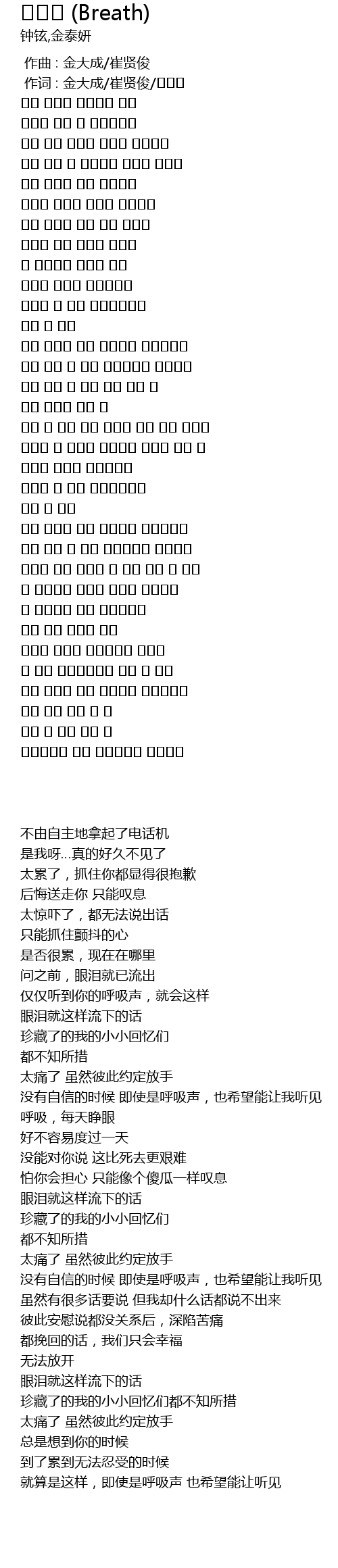| [02:56.190] | 자신 없을 때 가끔 숨소리라도 들려주길 |