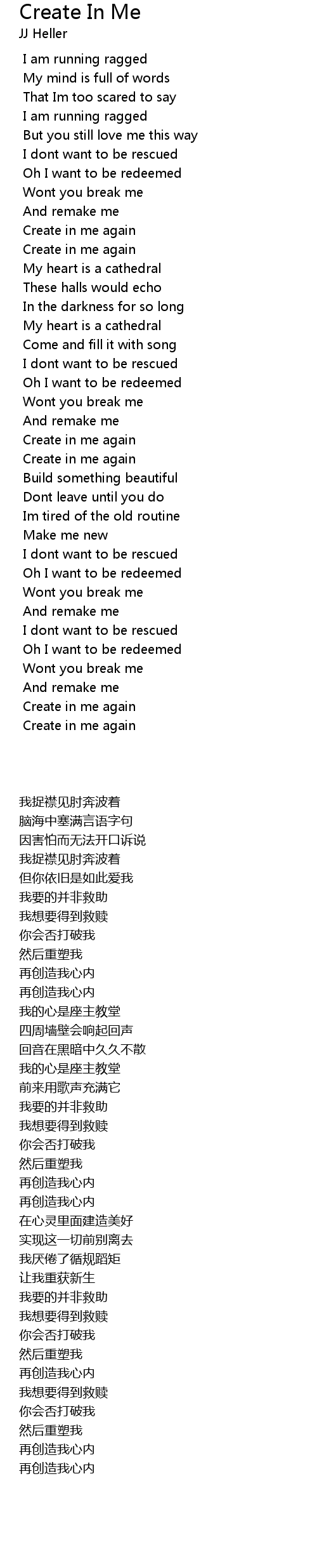 | [01:54.43] | Create in me again |