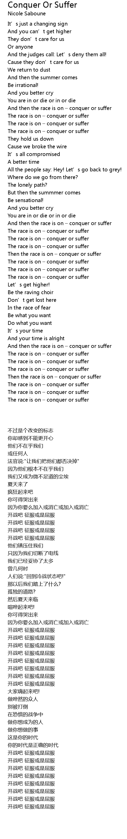 | [01:53.99] | And then the race is on – conquer or suffer |
