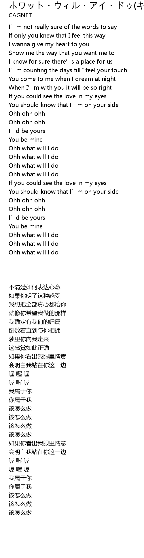 | Song | ホワット・ウィル・アイ・ドゥ(キャグネット) |