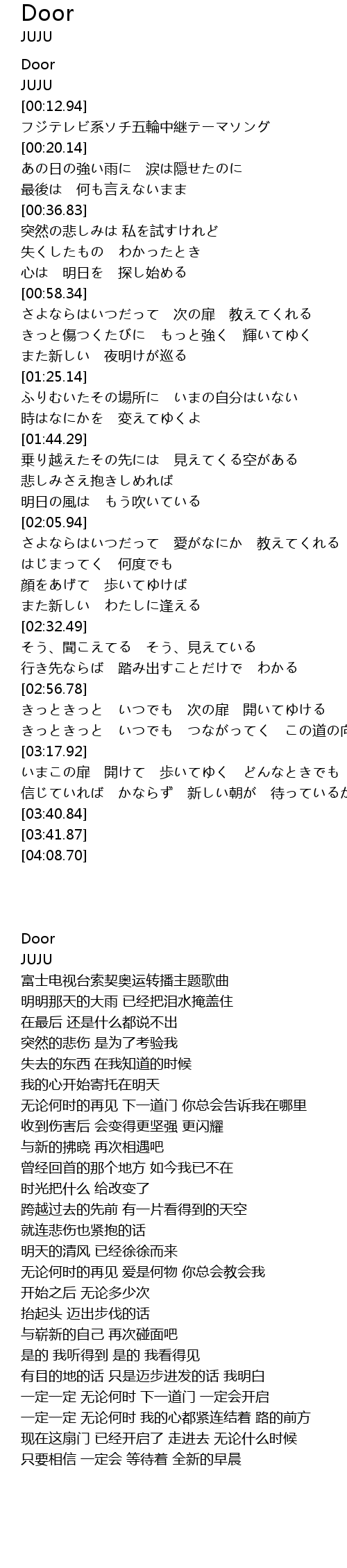 | [00:00.00] | Door |