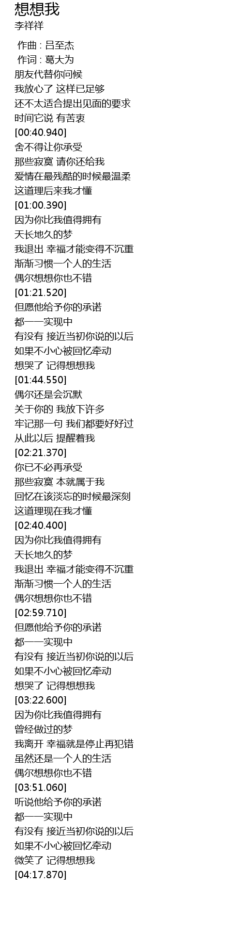 | [01:37.370] | 想哭了 记得想想我 |