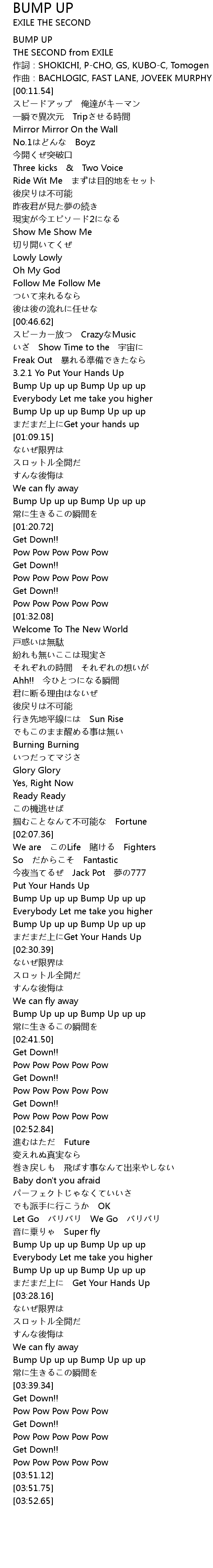| [02:24.79] | Bump Up up up Bump Up up up |