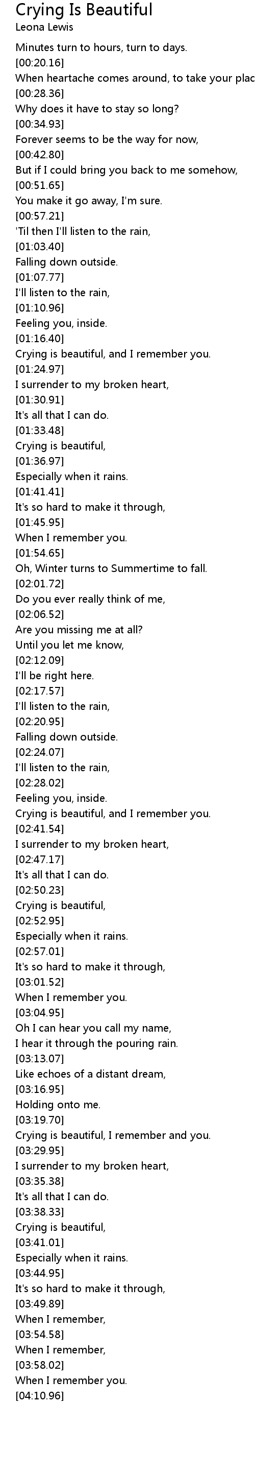 [02:35.45] Crying is beautiful, and I remember you.
