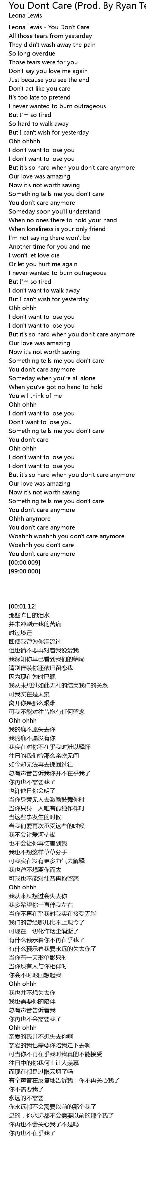 Woahhh woahhh you don't care anymore |