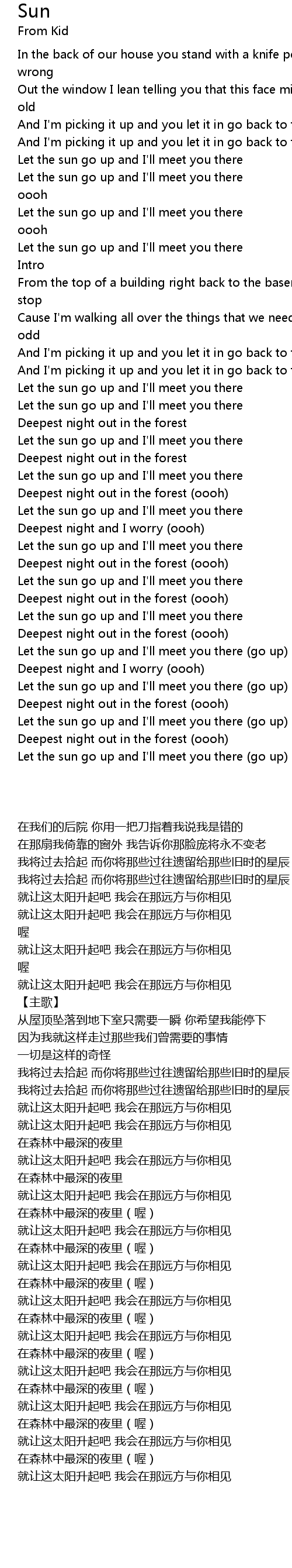 | [03:03.03] | Let the sun go up and I'll meet you there (go up) |