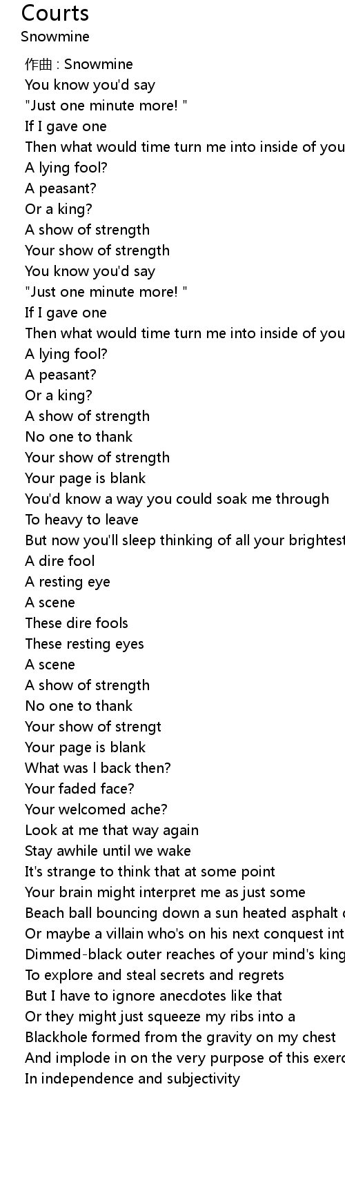 | [00:55.466] | Your show of strength |