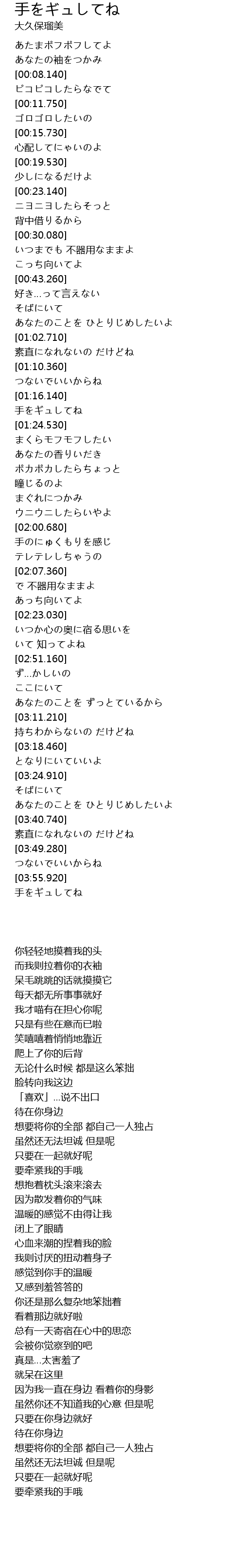 | [03:27.770] | あなたのことを ひとりじめしたいよ |