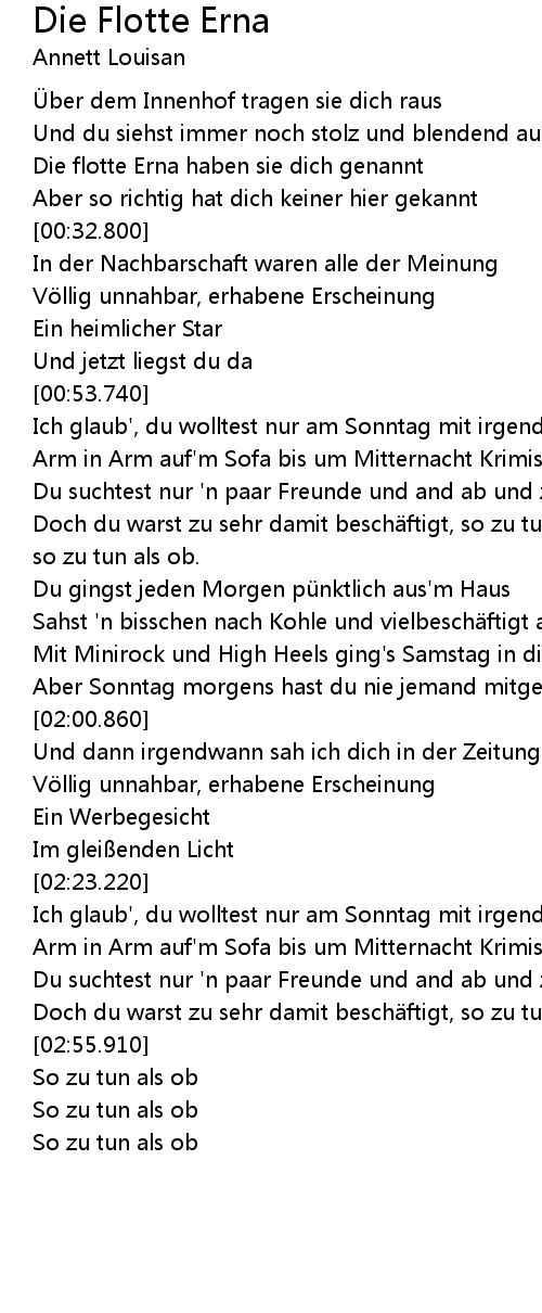 | [00:17.540] | Die flotte Erna haben sie dich genannt |