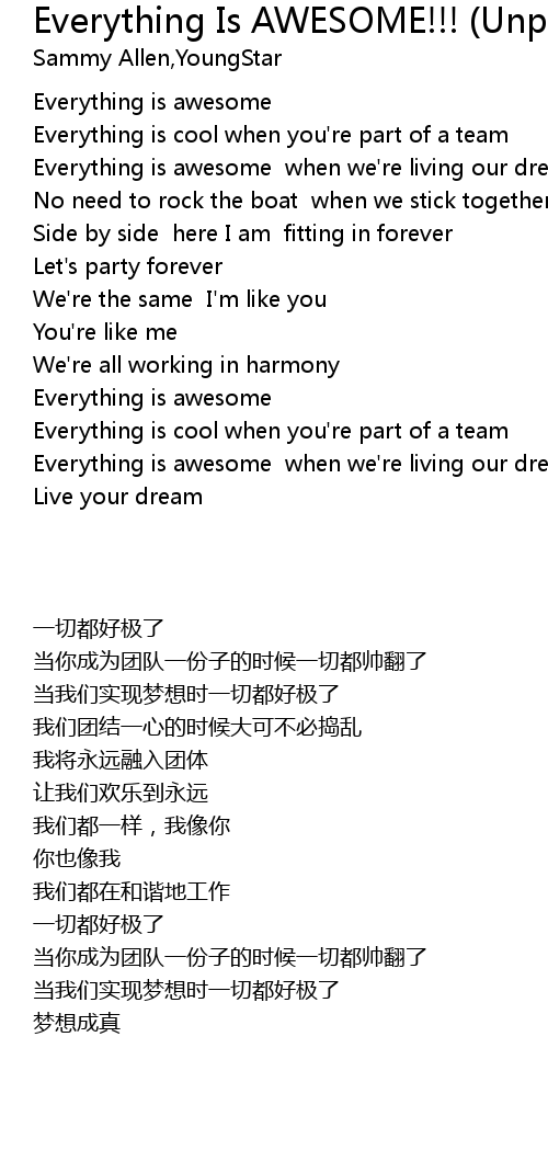 Everything is awesome when we're living our dream |