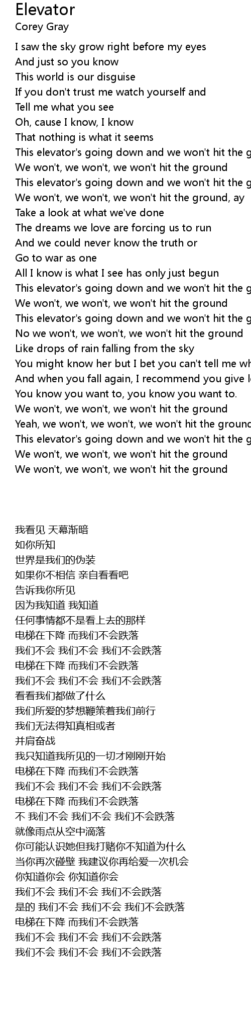 This elevator's going down and we won't hit the ground |