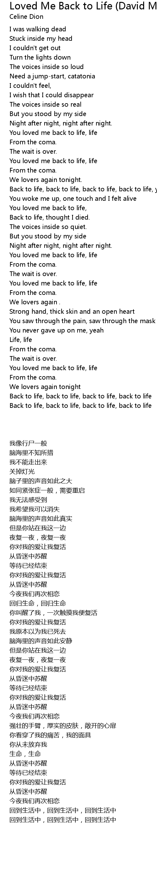 Loved Me Back to Life (David Morales Remix radio edit) Lyrics