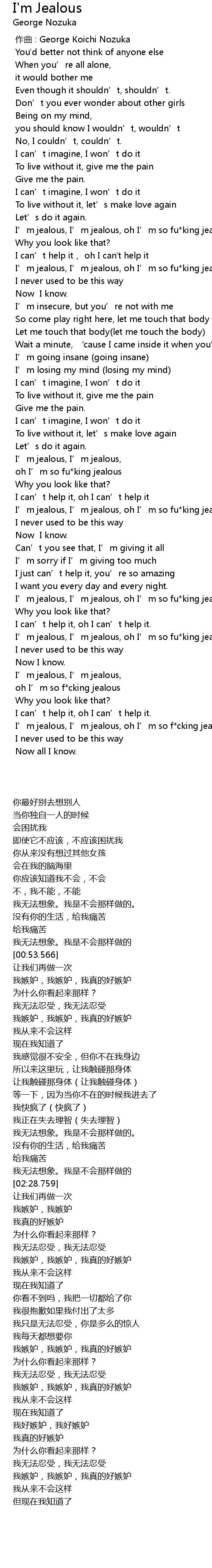 | [04:15.758] | I' m jealous, I' m jealous, oh I' m so f cking jealous |