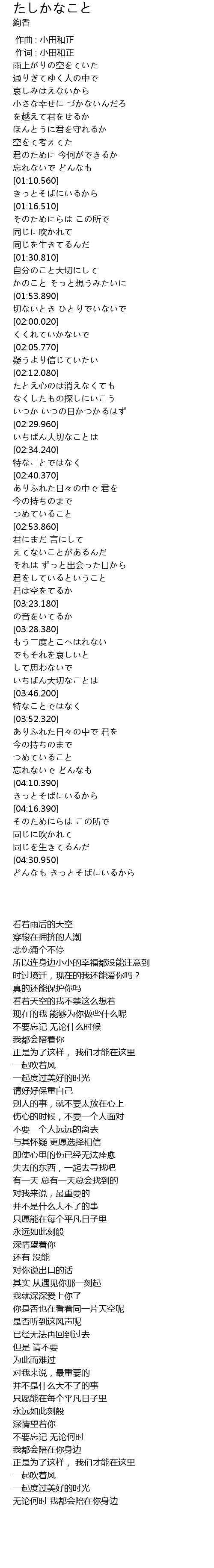 | [00:01.00] | 作词 : 小田和正 |