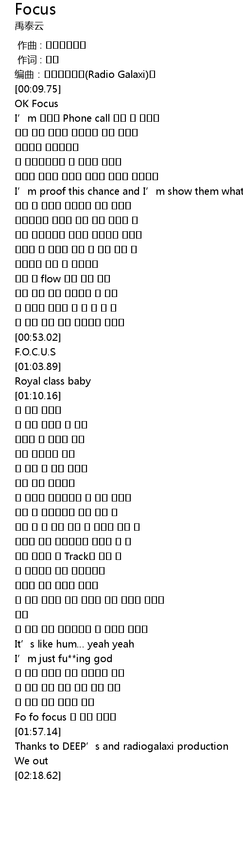 | [01:53.61] | Fo fo focus 이 랩이 시작점 |