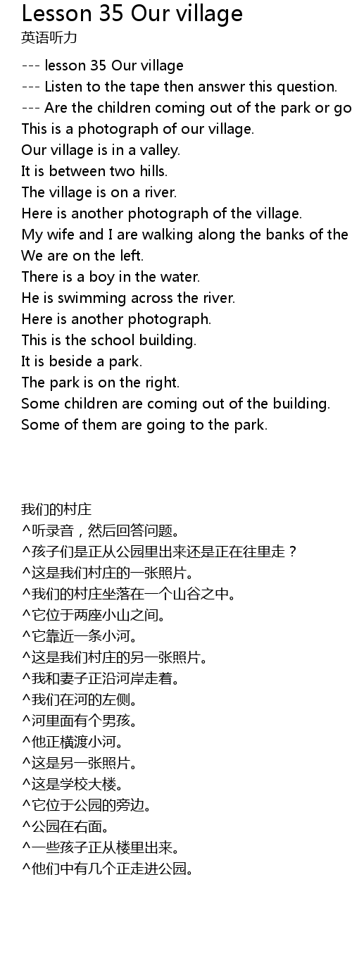 Lesson 35 Our village Lyrics