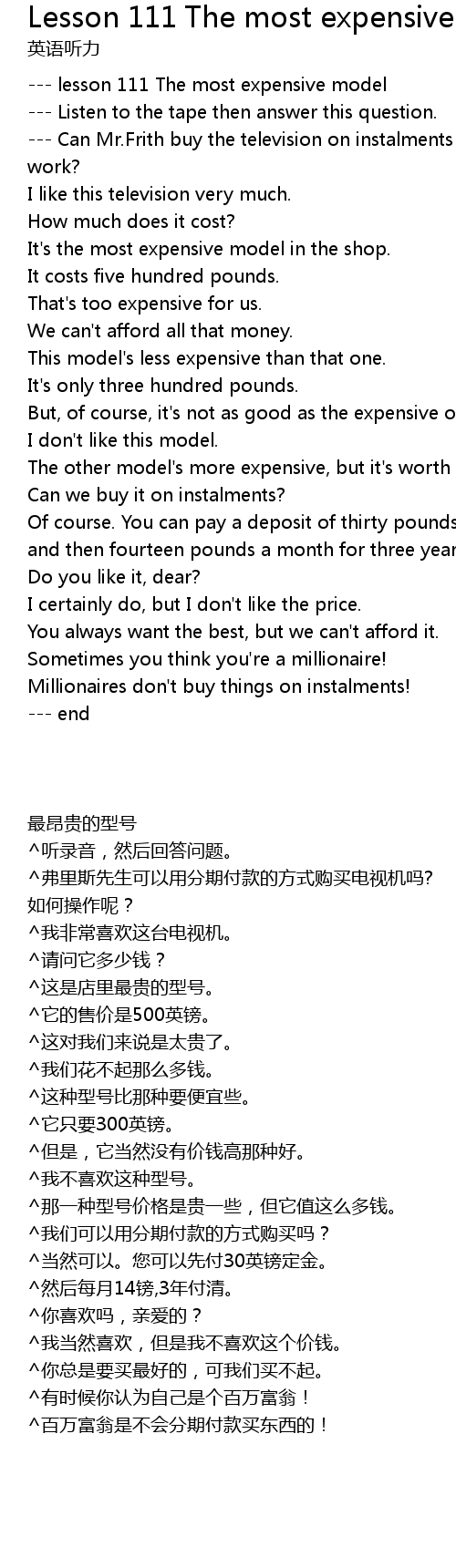 | [00:00.800] | --- lesson 111 The most expensive model |