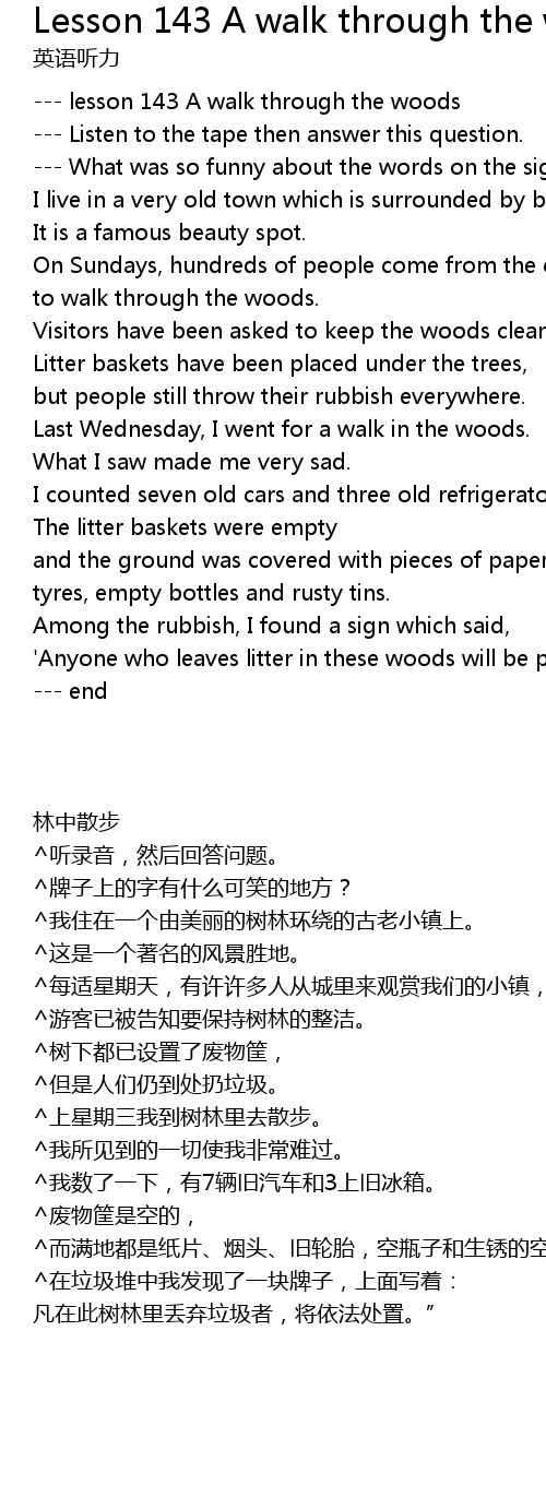 | [00:00.800] | --- lesson 143 A walk through the woods |